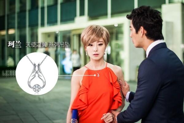 近看这身装扮,在细节处也大有文章。颈间的珂兰钻石“天使之翼”吊坠点缀出钟缇的高贵,而且巧妙地避免了雪纺连衣裙给人太过飘逸的感觉,让人感觉更为正式和庄重。不仅如此,吊坠水滴造型,充分的提升了整体的搭配的浓浓韵味,精致万分。