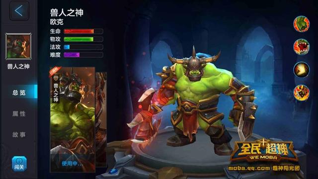 解析:兽人之神-欧克的英雄定位为肉盾,但用在打野位置上却是极为合适。兽人之神的被动战争机器和技能战争狂吼能够为他提供额外的护甲和生命恢复速度,让让他在清野的同时能够快速恢复血量。兽人之神1级加点旋转反击,可以让他迅速刷野。升级后,看到队友对线被压或地方残血可以前去gank,利用技能战争狂吼嘲讽敌人,配合队友完成收割。