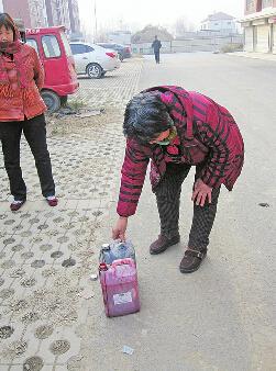 村民想拿欧克家具使用的油漆去检测 记者马敬 摄