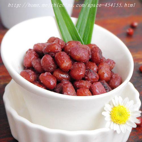 1. 红豆用清水浸泡一夜,挑去坏豆,洗净。