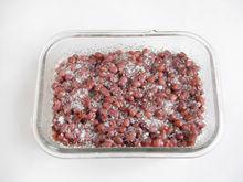 7. 煮好的红豆均匀的铺入容器里,一层红豆一层白糖一直铺完。(白糖的量依据自己喜好而定,但不建议太多了)