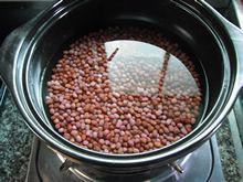2. 锅里加入适量水,加入浸泡的红豆煮至水开后再煮约2分钟。