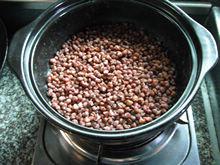 4. 洗好的红豆倒入砂锅中,(没有砂锅也可以用高压锅等),重新加入适量清水。水量以没过红豆1厘米左右的高度为参考)