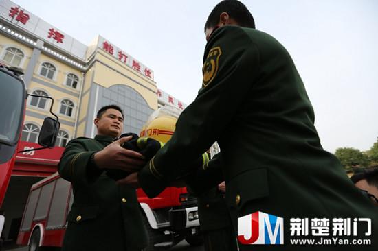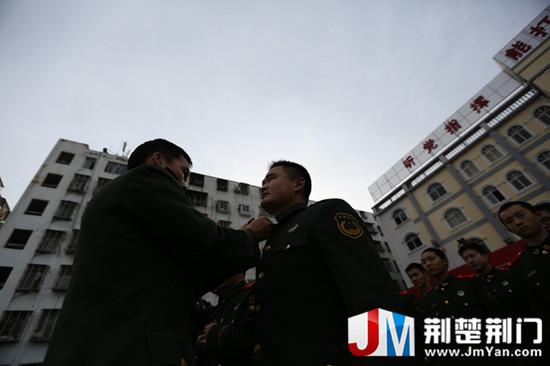 图为:交接战斗服,将为国为民的誓言交托到战友手中