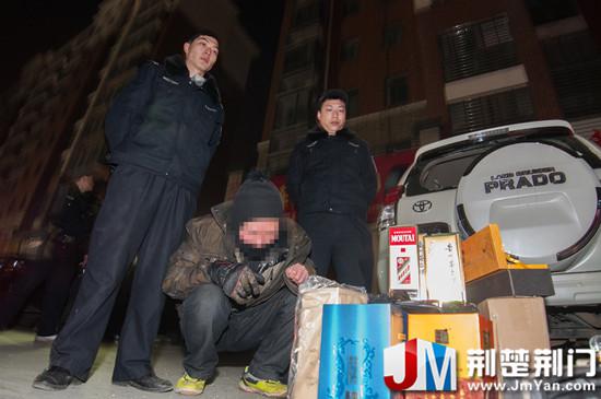 经查,嫌疑人叫李某,是沙洋人,今年53岁,有吸毒、盗窃前科。当天凌晨1时,他从深圳大道走到虎牙关大道,沿途用电筒照射路边车辆,均一无所获。直至凌晨4时,他窜至军马场路某小区门口,发现这辆白色越野车内放有大量名贵烟酒,于是用弹弓撬砸车玻璃并盗窃车内财物,没想到被当场抓了现行。等待他的将是法律的制裁。李某清楚,这个春节只有在看守所里度过了。