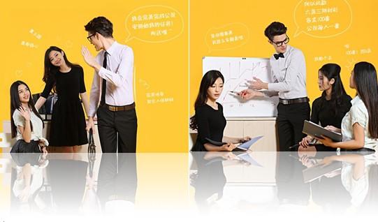 在13年淘宝视觉大环境下,普偏商品拍摄为白底基础模特展示拍摄,满速大胆用女模互动和颜色色波较长的黄色来展现商品。在主图、宝贝抓取图的画面上,呈现女模特的手从男模后面伸出操作各种办公场景,详情页里面则邀请许多的校花和男模互动,将黄色的品牌元素体现在照片的各方面,这样改变完之后,满速和其他品牌的区隔度就通过视觉表现体现无疑,达到视觉的差异化呈现。这样的改变也不是臆测而出,而是基于两方面的考量。