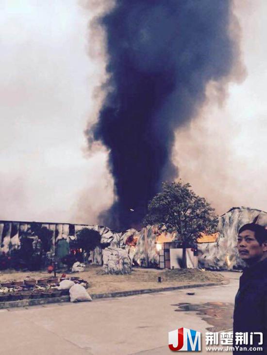 钟祥张集一香菇厂突发大火 浓烟熏黑半边天