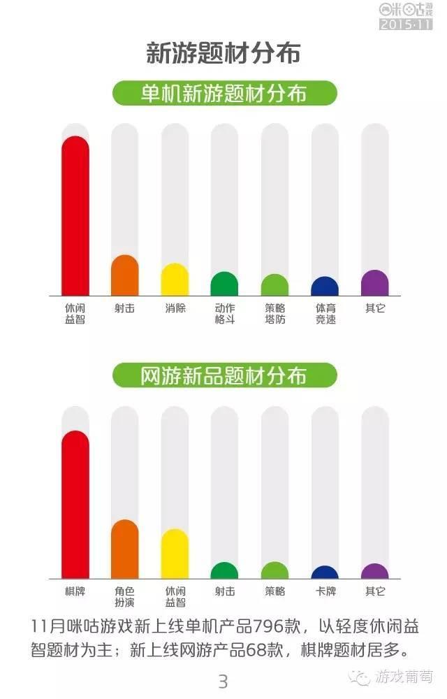 报告显示,11月咪咕游戏新上线单机产品796款,以轻度休闲益智题材为主;新上线网游产品68款,棋牌题材居多。