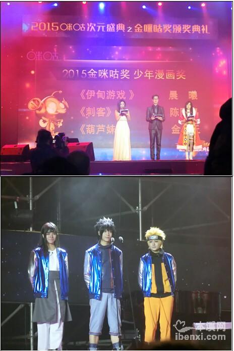 历时6个多月,经过全国20个分赛区,30多个城市,约17万选手参与的次元英雄赛事,在本次颁奖典礼上陆续揭晓了三大赛事的5个金咪咕奖项。原创次元英雄——“2015金咪咕-少年漫画奖”获奖者分别是《伊甸游戏》晨曦、《刺客》陈阿鸟、《葫芦妹》金丘,“2015金咪咕-少女漫画奖”获奖者分别是《除了你以外的世界》的陈阿鸟、《替身游戏》的米沙、《我的女友是恶龙》的黎之恒和月珑,他们的作品从漫画情节到绘画实力,与专业的漫画家相比毫不逊色;最具看点的“2015金咪咕COS次元英雄奖”由沈阳紫藤动漫社、大连零下八度、厦门神魔井社团获得,他们以其精湛的表演和精美的道具服饰,高还原度的演绎技惊四座,获得现场评委的一致好评和观众的追捧;而声优次元英雄赛事的“2015金咪咕声优次元英雄奖”由追马、桑萌、Li小困、余澜、楚衔获得,他们以自己特有的配音风格从15强选手中脱颖而出,以他们的声音,给予角色活力,以他们的声音,征服全场观众。颁奖最后,北京若森数字科技有限公司以《画江湖之不良人》一举获得2015金咪咕将最具影响力动画奖。
