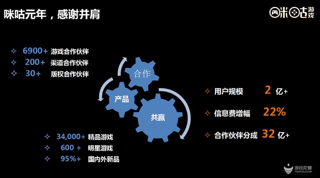 - 在合作伙伴业务收入规模里面,3款游戏年收入超过1亿的;2款游戏年收入超过5000万;15款游戏年收入超2000万;15款游戏年收入超过1000万;
