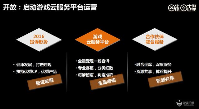 “希望联合合作伙伴共同把这个事情做好,行业需要健康发展,我们也会一起去打击违规,扶持优秀CP和产品,同时我们的服务也还要提升,包括一些专业化客服的打造,以及通过精确的数据分析来判断合作是否一个好的合作。同时我们希望和伙伴一起共同提升平台的服务能力,这个平台可以在线上线下进行合作,合作伙伴可以通过后台,通过大家人员的参与,更好的提升服务能力,我们希望把平台孵化成产业的服务平台,共同优化我们产业的服务现状。”