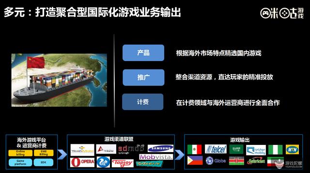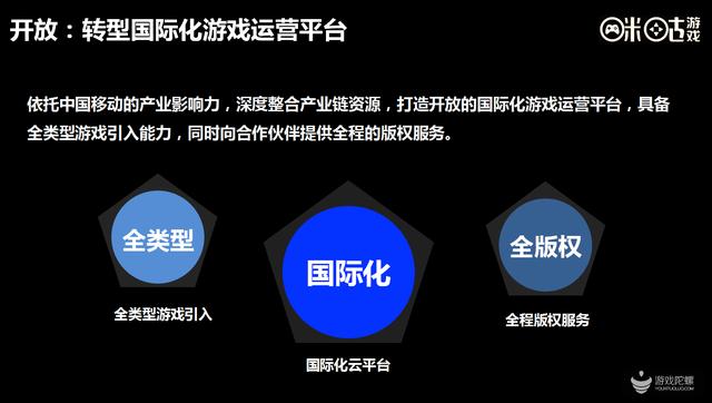 国家化方面,咪咕将针对国外市场,选择适合国外的好游戏,联合渠道进行推广,包括计费上,咪咕也会联合一些厂家的合作,和国外运营商的合作,通过一些支付体系的输出,让国内游戏在国外也能实现方便快捷的变现支付。