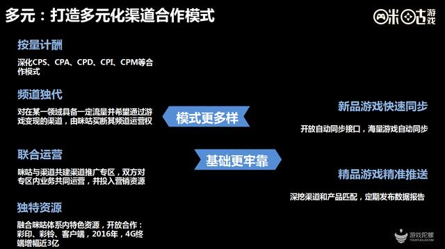 在渠道合作方面,在2016年,咪咕也会做些创新的推进。首先,继续推进传统的CPS、CPA等方式。和渠道的合作方面,咪咕将和渠道共同建设渠道推广专区,双方对专区内业务共同运营,并投入双方的营销资源。