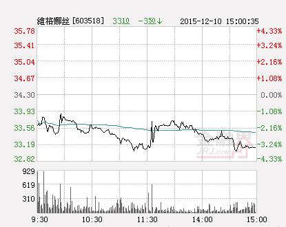 金融界股票12月10日讯 今日维格娜丝开盘报33.8元,截止收盘,该股跌3.5%报33.1元,当日振幅为2.54%,换手4.88%,成交金额为9078.26万元。5日内跌幅为3.32%。