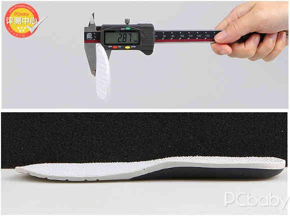 1、观察鞋底造型,测量其厚度。用手部贴合鞋底,模拟走路做前倾、弯曲的动作,感受鞋底舒适度。