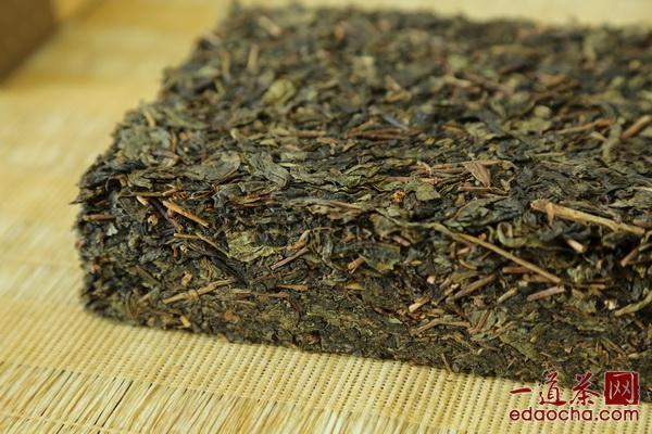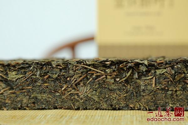 茶砖松紧适度,有利于后期陈化,同时包含在茶砖里的茶梗保证了茶砖里面的透气性,使茶砖里外发酵均一,品质优良。