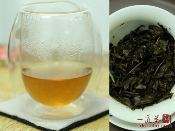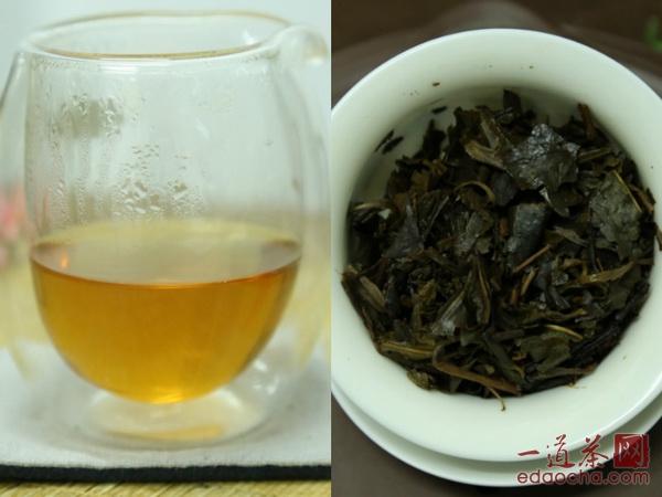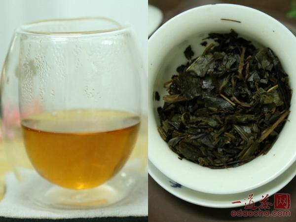 汤色依然深橙黄尚亮,显浑。香气与第一泡差不多,但并没有感觉到明显的陈香和甜香,也没有感受到什么明显的优点。口感比第一泡醇厚一些。叶底绝大部分都展开,能看到一些细细碎碎的茶末留在碗底。