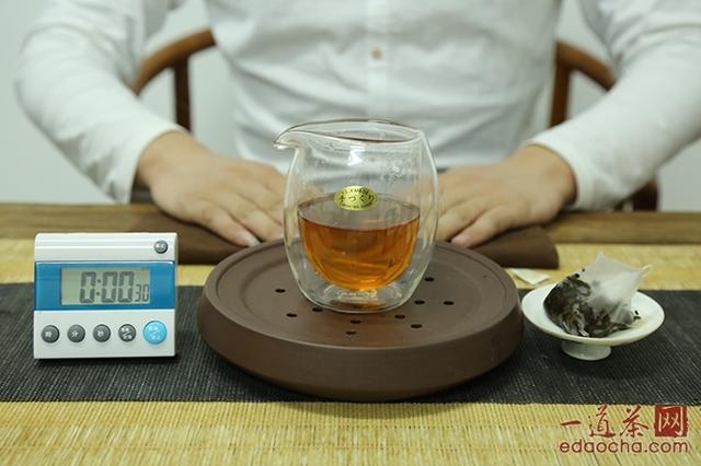 由于是袋泡茶,无需洗茶,直接开汤冲泡。第1泡茶汤橙红透亮,木香纯正,入口茶味虽淡,带着淡淡的清甜。下一泡需要延长一下冲泡时间。