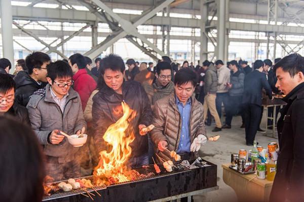 誓师大会后,自助烧烤、晚宴、冷餐会、焰火晚会等娱乐表演节目轮番登场。来自世邦艺术团的实力唱将们纷纷上台献唱《Bang Bang》、《家在东北》、《星光》、《恭喜发财》等吉祥喜庆的歌曲。此外,精彩的游戏互动、多轮幸运抽奖也一次次在现场掀起高潮。