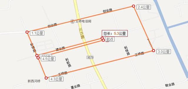 暴走路线:公司→建业路→妙境北路→创业路→运通路→王桥路→妙境北路→建业路→公司