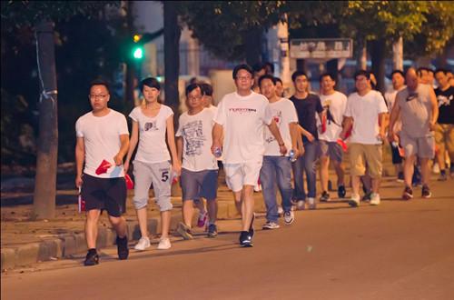 昨日下午18:30,近百名同事准时在形象墙下集合,杜经理对暴走队的组织架构进行了解读并宣告了团队成立的目的和意义,随后张经理宣布:“世邦·ZENITH集团‘雷霆暴走队’正式成立!”。接着,张总队长向队员们讲解了行动路线和注意事项,最后随着公司总书记一声“出发!”令下,雷霆暴走队队员们在旗帜的带领下兴致盎然的列队出发,第一次暴走行动顺利开启。
