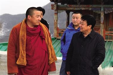 加大对寺院突出以“爱国爱教、涉藏维稳、守法持戒、民族团结、政策形势、感恩利民、服务信众”为内容的宣传教育,让法治走进宗教场所,普及到广大信教群众,促进宗教活动走向规范、有序、和谐。