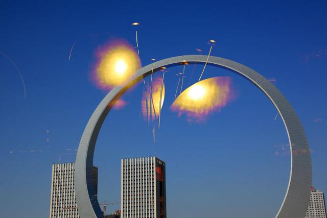 巧妙的摄影构思使得生命之环和古亭相互交融,环中有亭,亭外有环,古典与现代的碰撞产生了崭新的美,带给我们新的美的享受。