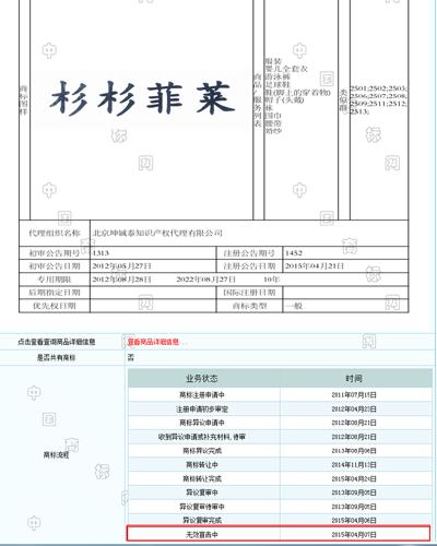 根据公开资料,“杉杉菲莱”申请人为徐治强。2011年7月,申请人针对这一商标提出申请,初审公告时间为2012年5月。