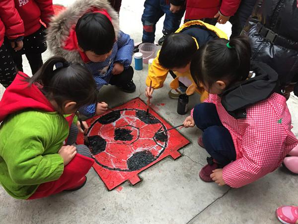 12月11日,合肥市大西幼舒馨分园的一群孩子们自己动手,给幼儿园内生硬单调的各类井盖,来了个大变脸。在老师的带领下,孩子们提着小水桶,带上颜料和画笔高高兴兴地来到了幼儿园的后花园。活动前,老师提醒孩子们圆形的是雨水盖、方形的是污水盖,画画时注意用不同的底色来区分。说完,孩子们就迫不及待地拿起画笔,互相配合,开始了他们卡通井盖的创作之旅。孩子们一边画,一边谈论,有的孩子说:“老师,原来井盖上也可以画画,真有意思!”有的孩子说:“老师,是不是我们给井盖穿上漂亮的衣服后,小朋友们下次就不会踩井盖了?”……。通过孩子们齐心协力地合作,圆圆的、方方的井盖都“穿上”了可爱的花外衣,原本了无生机的过路井盖在小朋友的巧手下,却摇身变成了幼儿里一道靓丽的风景线。
