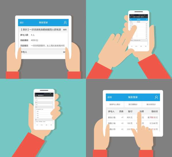 | 谁来结算 | 记账的人通过纸笔计算器,高级点用个EXCEL来统计,没个几小时搞不好,还会算错。复杂易错 | 自动结算,随时结算,随时查看支出和每个人的消费情况,不会有人为的疏忽和错误。准确迅速! |