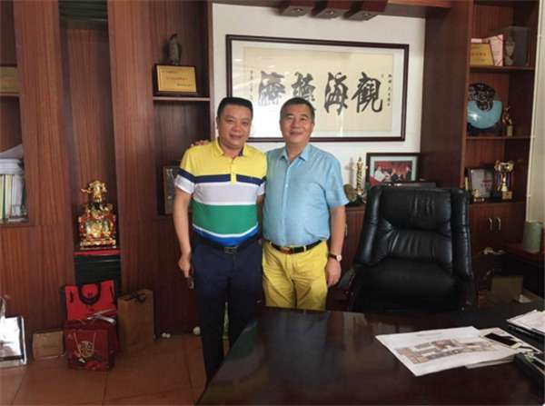 欧美陶瓷(欧雅企业)董事长霍炳祥(右)与逸家建材董事长钟兴惺惺相惜合影贺合作
