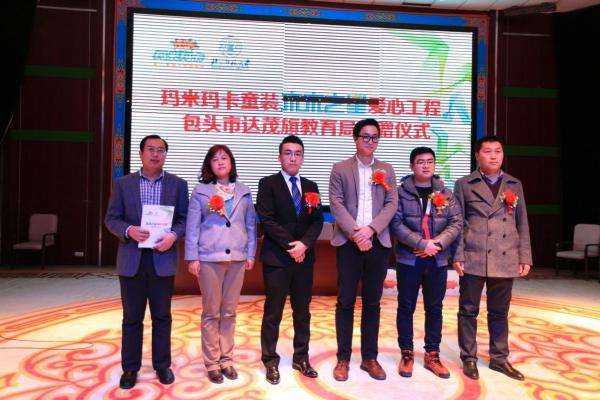 11月15日,玛米玛卡童装“未来之星爱心工程”公益行动走进内蒙古大草原,对包头市达茂联合旗等8所中小学校进行爱心捐赠。达茂联合旗教育局局长郭杰先生、达茂联合旗教育局副局长王永泉先生、达茂旗学生资助管理中心主任陈德胜先生、北京师范大学国内合作办公室教育发展中心副主任迟超智先生、玛米玛卡总部品牌总监江志敏先生、玛米玛卡东北分公司副总经理潘培志先生、玛米玛卡包头市总经销商王亚君女士、以及达茂旗各学校的校长们、媒体记者等近600位嘉宾出席了此次公益捐赠仪式。据了解,玛米玛卡童装“未来之星爱心工程”是由福建宝德服饰有限公司携手北京师范大学共同举办的一场席卷全国的大型公益行动,行程数万公里,受捐助孩子将高达数十万学子,目前该公益行动已在北京、重庆、福建等多地连续展开,此次内蒙古是其中的一站,未来该活动还将在河南、河北等省市相继展开。