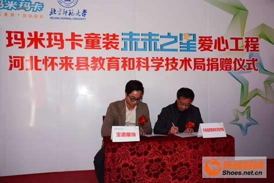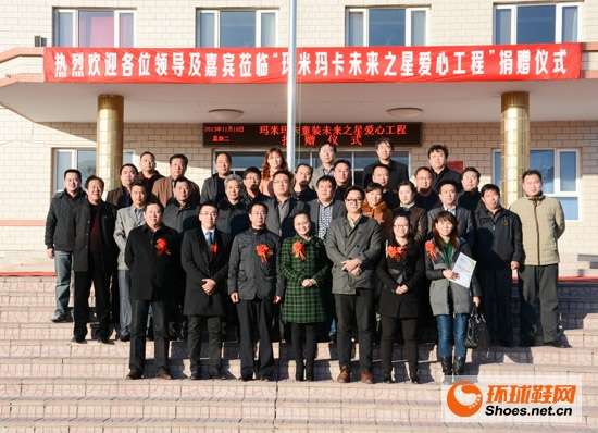 “未来之星爱心工程”走进河北怀来县-中国人民英雄董存瑞的故乡,在怀来县存瑞中心学校举行捐赠仪式,出席此次捐赠仪式的领导有张家口市教育局副局长陈红梅女士、张家口市捐资助教科科长卫升高先生、怀来县教育和科学技术局局长安国强先生、北京师范大学国内合作办公室教育发展中心副主任迟超智先生、玛米玛卡总部品牌总监江志敏先生、玛米玛卡北京分公司经理李消女士、玛米玛卡张家口市经销商陈秀丽女士、以及怀来县接收捐赠的27所农村学校的校长和媒体记者。