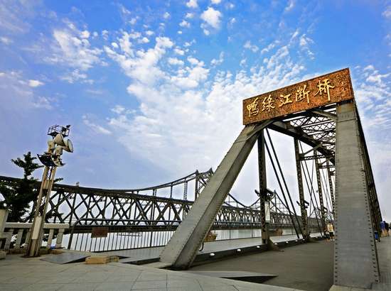 在浩瀚的鸭绿江上,有一座具有珍贵历史意义的断桥。它曾是鸭绿江上第一座桥,始建于1909年。抗美援朝战争期间被美军炸毁,中方一侧残存四孔,成为抗美援朝战争的历史见证。断桥仿佛是一位屹立江中的历史老人,凭吊和铭记着中国人民志愿军的英雄业迹。后经翻修部分重建现为国家级爱国主义教育基地,桥上遗留的累累弹痕和桥头飞翔的群群白鸽,把战争与和平两个不同的画面同时呈现在游客面前,令人深受启发。