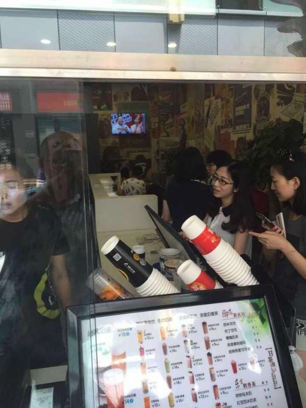 ??悄悄地埋伏在长长的点单队伍中,虽然店里的冷气开的十足,可是不停忙活的店员还是留下了细密的汗珠。