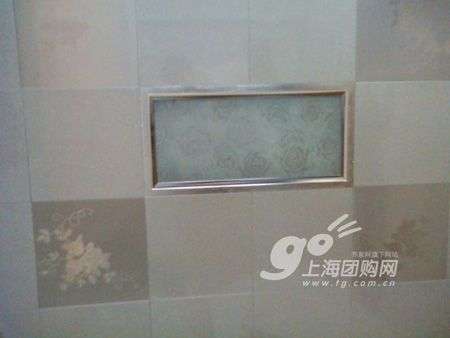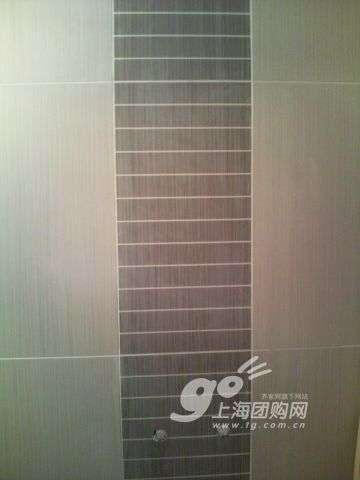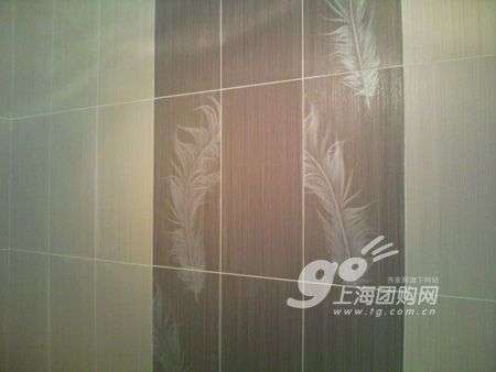 卫生间一角,瓷砖上面有很多羽毛的图案,很飘逸!