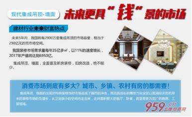 成功创业不是梦,以上小编为你介绍的现代集成吊顶·墙面是你创业的优选。好项目蕴藏好商机,在市场上很受欢迎,拥有广阔的前景。选择现代集成吊顶·墙面加盟创业,能够为你营造更好的创业环境。