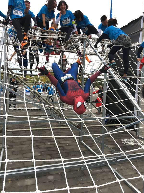 昨日的Columbia Tough Running极限酷跑障碍赛,成人参赛者需要完成10公里的赛道,跨越轮胎巨阵、横渡天梯、扁带之舞、穿越大墙、漂移攀岩墙、高空绳网挑战等9种新奇障碍及耐力考验到达终点,这是一条颠覆体能的线路,同样也考验着参赛者的协调能力和胆量。有趣的是,在参赛队伍中,还有队员身着“蜘蛛侠”、“绿巨人”、“小怪兽”等装扮,比赛中,队员之间并没有残酷的争夺,而处处皆是互相帮助的情景,如障碍跨越墙,对于有些女生有些困难,现场的队员当起了人梯,为素昧平生的人提供帮助。
