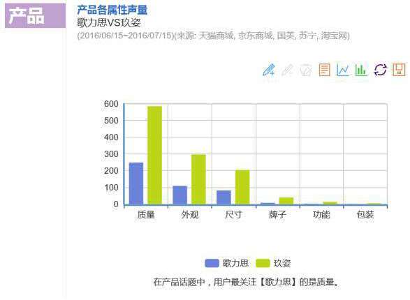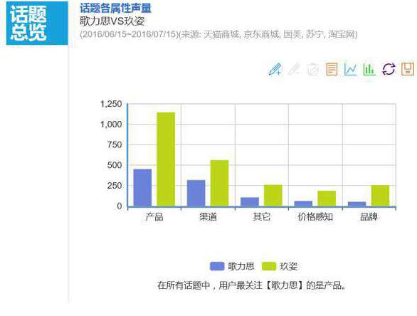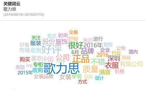 从舆情态度来看,消费者对于歌力思和玖姿这两个品牌总体上还是很满意的,消费者对歌力思的关注不仅仅是它的服装产品,还包括它收购其他品牌的新闻,而消费者对玖姿的关注主要集中在产品、质量、舒适度等方面,说明玖姿的服装产品还是让消费者很满意的。