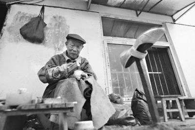 本报讯(记者彭年)在中山路254号的补鞋摊前,80岁的老鞋匠朱立叶精神矍铄,腰板硬朗。昨日,说起制鞋与补鞋,朱立叶如数家珍。
