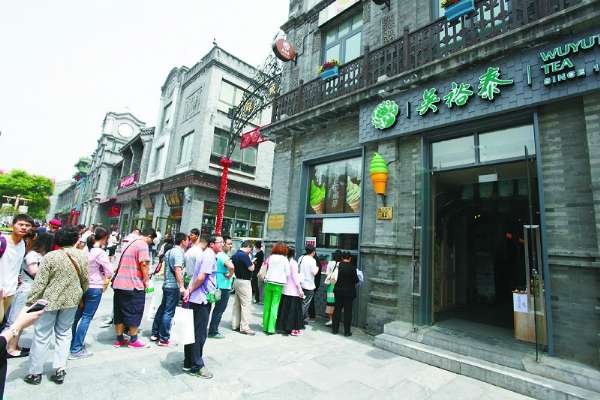 )、前门、雍和宫开了三家试点门店,“效果比预期的好很多。”赵书新说,雍和宫的茶水吧仅仅8平方米左右,每杯茶水售价为12~15元,开业第一天销售额就达3000多元。值得一提的是,吴裕泰茶水吧的奶茶都是鲜奶制成,十分健康。赵书新坦言,目前实体店的顾客大多在35岁以上,而快捷、时尚、健康的茶水吧可以帮助吴裕泰吸引年轻的消费群体。三家试点茶水吧不仅为吴裕泰带来了经济收益,还受到了消费者的欢迎。今年4月,吴裕泰还计划在东单、南锣鼓巷等商圈再开两家茶水吧。