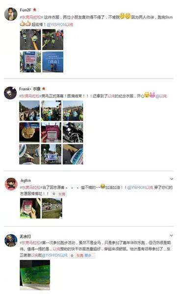 作为本次活动指定服装赞助商,YISHION以纯提供装备包括参赛者、志愿者、裁判,共计3万多套衣服、包包。2016年3月27日马拉松活动当天,现场不同颜色的YISHION以纯特色运动装备可谓是一道非常靓丽的风景线!