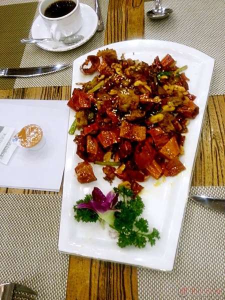这个香辣鸡脆骨,要说一下,这是我们都没有想到会在西餐厅出现的一道菜,鸡脆骨的味道挺好的,和香酥辣椒花生配在一起,真是让我们吃出了川湘菜的赶脚,还是比较意外的。