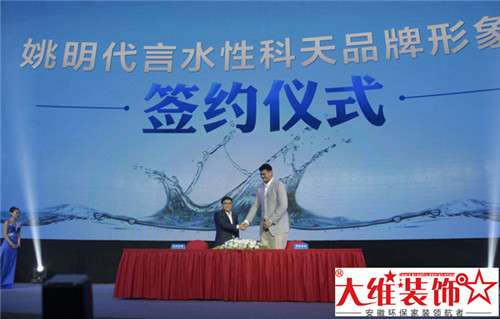 7月8日在北京水立方由科天集团举办了一场水性科天无毒家装品牌发布会。本次发布会篮球巨星姚明正式签约成为科天品牌形象代言人。