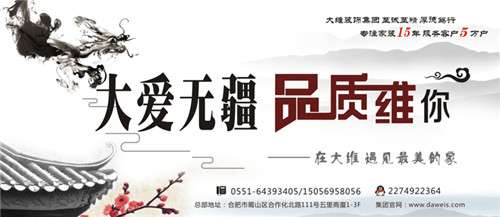 安徽大维装饰集团创业15年,始终秉承“至诚至精、厚德笃行”的企业文化理念,始终高举“环保家装、品质家居”的办企方针,旗下辖马鞍山、安庆等众多分公司子机构,业已成为安徽省装饰行业的翘楚与明珠。在大维,不当遇见最美的家,更能让您体验最健康的家。爱家、爱她、爱大维!