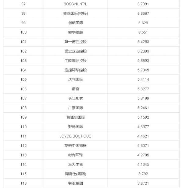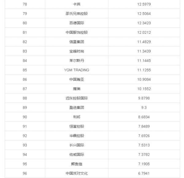 统计对象为沪深及港股国内服装及相关产业集团 港元已按当日汇率转换为人民币