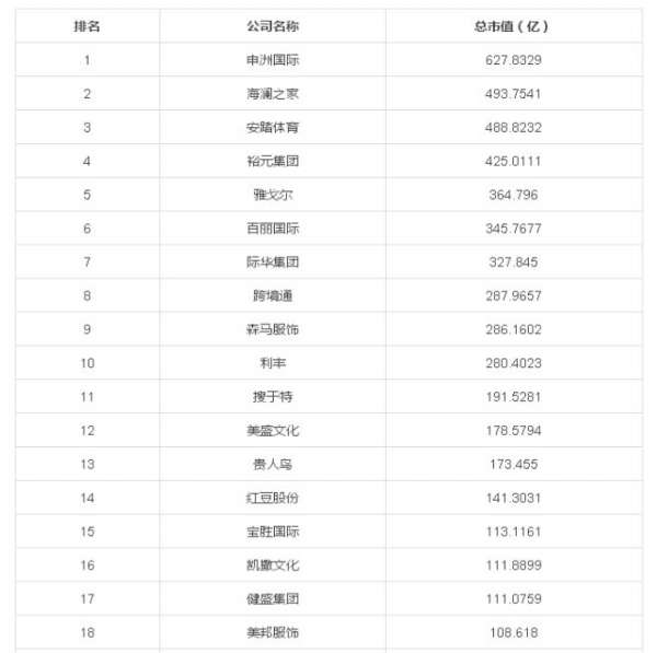 截止2016年10月31日收盘,沪深两市及港股服装板块总市值达8708.69亿元,市值排名第一的是申洲国际,目前总市值627.83亿元,申洲国际专注于以代工方式生产针织品,其竞争优势在于其超越对手的生产效率和研发能力,公司提供的一站式生产方案保障了品牌商的