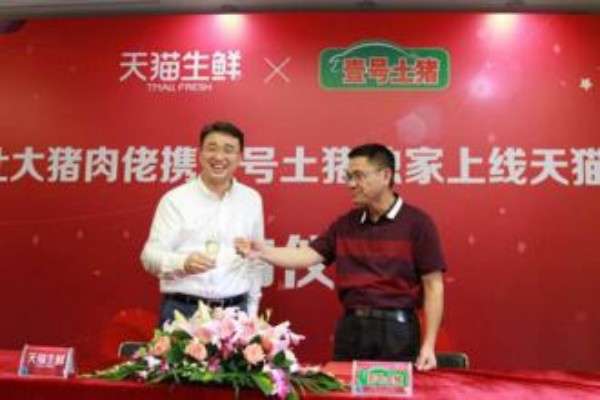 2016年5月7日下午,“北大猪肉佬携壹号土猪独家上线天猫”签约仪式,在广州维多利亚广场举行。由“北大才子”陈生、陆步轩联合打造的“壹号土猪”,正式签约“天猫生鲜”成为其唯一官方授权的线上平台。未来,消费者无需步入肉店、菜场、超市,直接在天猫平台下单即可享受宅配到家的高品质鲜肉。曾用“北大水平”革新猪肉行业的北大才子们,欲借电商重构万亿级的生鲜市场。