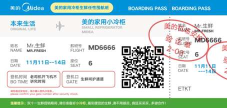 双11当天,在本来生活网购买促销生鲜的用户们表示“第一次收到这样的快递盒,很惊喜”。原来,这是美的冷柜专门定制的王嘉尔限量快递盒,快递盒中还藏有美的冰柜准备的惊喜“机票”一张,机票上显示的乘客是Mr.生鲜,将由本来生活飞往美的冷柜,提醒乘客“生鲜大促随意购”、“海鲜蔬果任意囤”、“购物列表一次清”,“一个冷柜就够了”,创意十足。