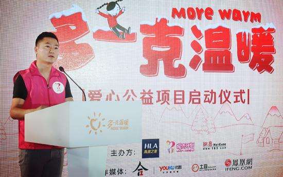 “多一克温暖”公益活动的第三年。暖流计划项目发起人、知名公益人邓飞,中国社会福利基金会暖流计划公益基金执行长王琦天,海澜之家服饰有限公司总经理周立宸,网易传媒副总裁张忆晨,独立音乐人好妹妹乐队应邀出席此次仪式。